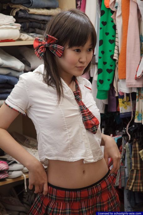 Schoolgirls Asia: Adorable 18 year old Alicia doesnt wear any panties under her school skirt