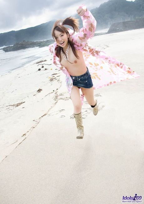 Idols 69: Amazing Asian babe Namiki strips and shows her hairy pussy on the beach