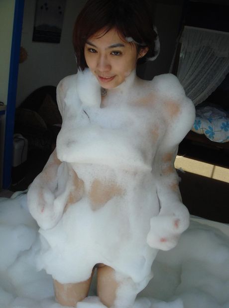 Trike Patrol: Asian teen Gerelyn strips and plays with her pussy in the bathtub