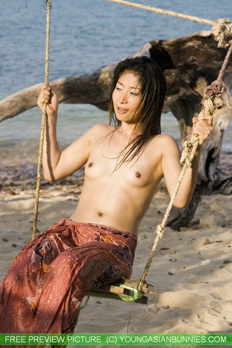 Hot Bunny Promotion: Asian teen Min strips naked and shows her tiny tits and pussy in the yard