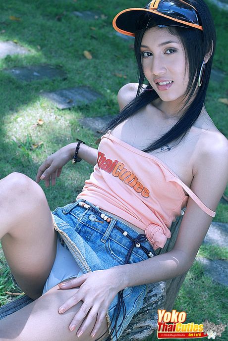 Thai Cuties: Asian teen Yoko strips and shows her tiny tits and pink pussy outdoors