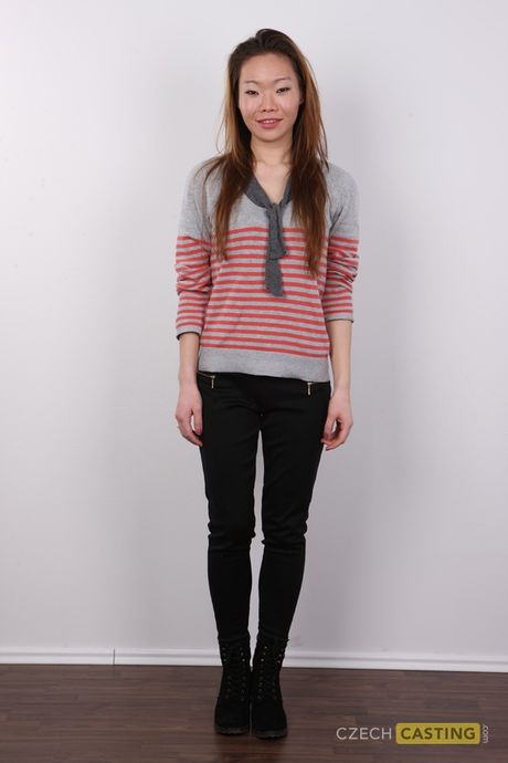 Czech Casting : Asian teen Zuzana strips and shows her tiny tits and ass in a casting