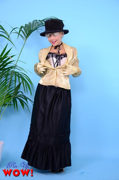 Pin Up Wow: Fantastic Asian Petra strips to her stockings and heels and shows her hot ass