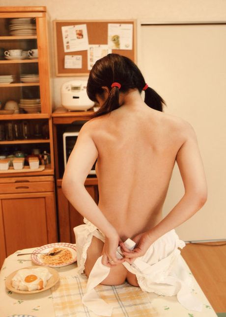 All Gravure: Sakura Shiratori posing topless in the kitchen and playing