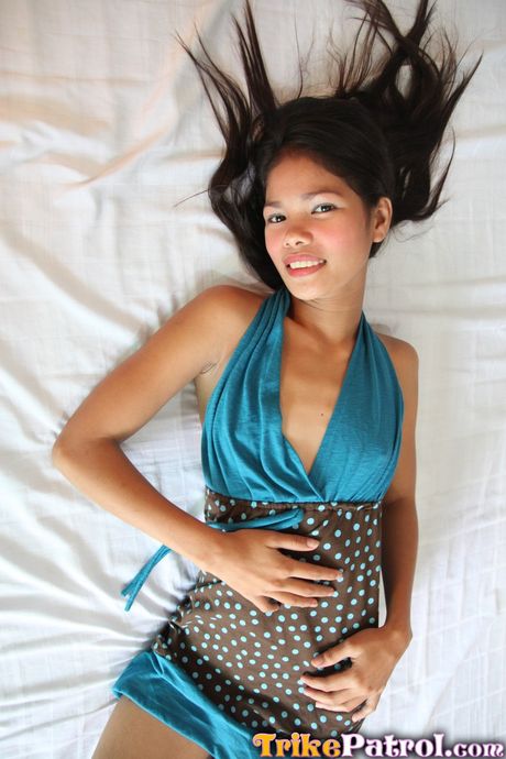 Trike Patrol: Skinny Asian teen Anabel strips and shows her tiny tits and pussy