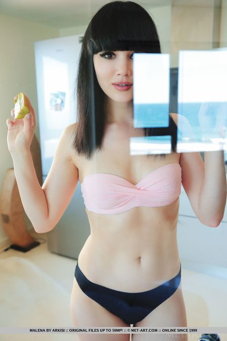 Met Art: Superb Asian babe Malena flaunts her hot booty and toys her pussy in a solo